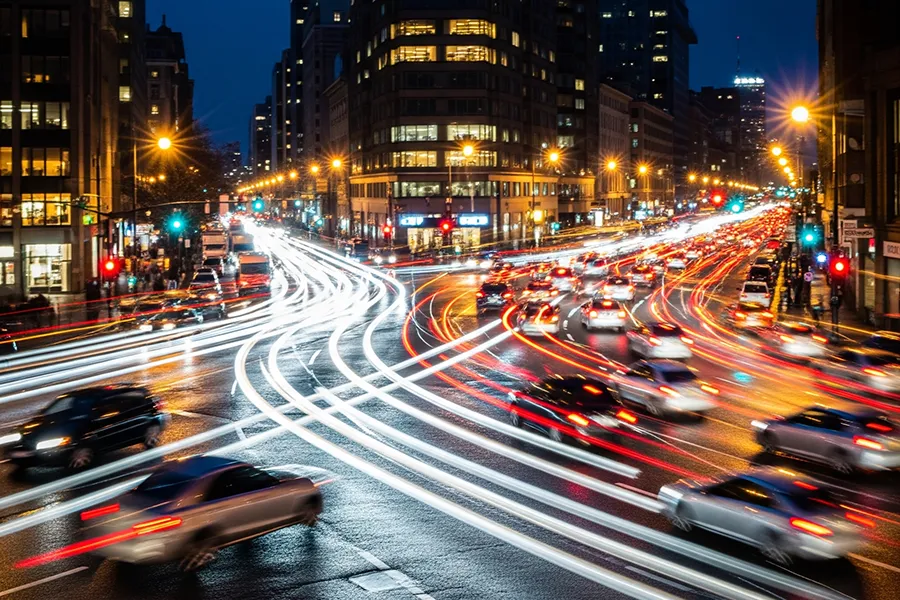 スポーツの撮影とは逆に、シャッタースピードを数秒間かけて切る設定にすると、残像効果が得られるため、光跡がキレイに出ます。